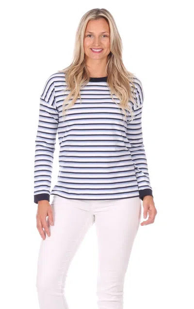 DUFFIELD LANE Sunset Pullover In Navy, White & Hydrangea Stripe In Multi