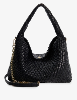 Dune faux-leather shoulder bag100% faux leatherMagnetic fasteningSlouchy silhouette, single shoulder strap, detachable chain strap, all-over woven design, gold-tone hardware, one main compartmentLength 23cm, width 32cm, depth 11cmWipe with a clean, dry cloth