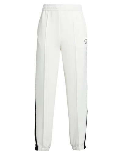 jersey, side seam stripes, solid colour with appliqués, high waisted, elasticized waist, tapered leg, regular fit, zips at hem, multipockets, sporty , Color: White , Size: 3XL