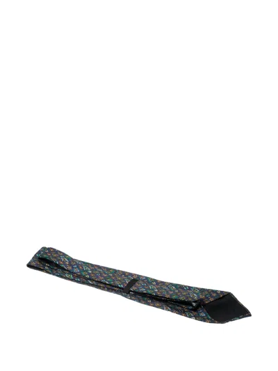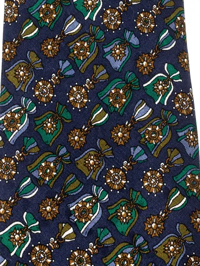 navy blue silk medal print pattern repeating pattern keeper loop detail Condition: GOOD. This previously owned and used item is in good condition with minimal signs of use. This may include fading of material or plating and scratches.