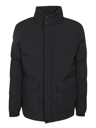 Padded jacket with a high collar and concealed front zip closure under a buttoned flap. Flap patch pockets.Explore the essence of winter comfort with the Duno jacket, crafted in black bi-stretch nylon. Perfect for tackling colder days with its padding and the practicality of its ample flap pockets.