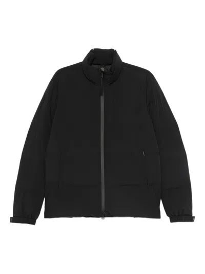 black quilted design front zip fastening high neck side zip-fastening pockets elasticated cuffs
