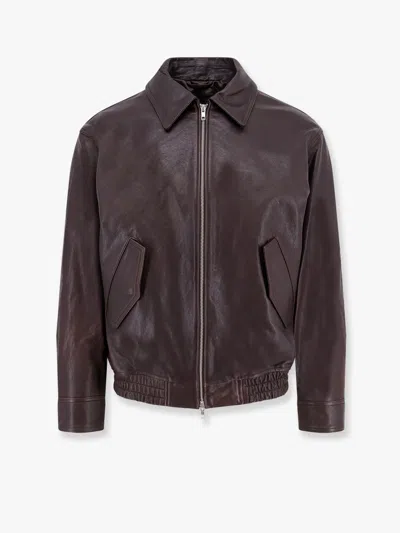 DUNST Unisex Leather Zip-up Jacket In Brown