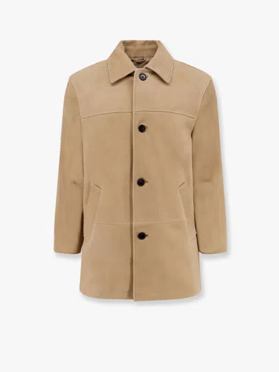 Unisex Suede Jacket In Camel Beige