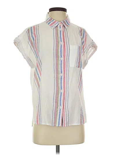 Dylan Short Sleeve Button Down Shirt, Size: X-Small. Item Details: White, Stripes Pattern, Collared Neckline, Short Sleeves, Fringe, Women's Tops, 100% Cotton