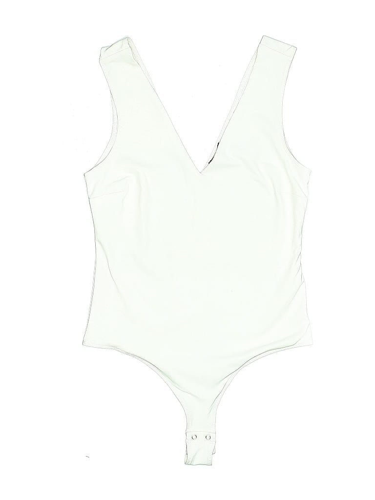 Dynamite Bodysuit, Size: Small. Item Details: White, Plunge Neckline, Sleeveless, Women's Tops, Nylon/Spandex