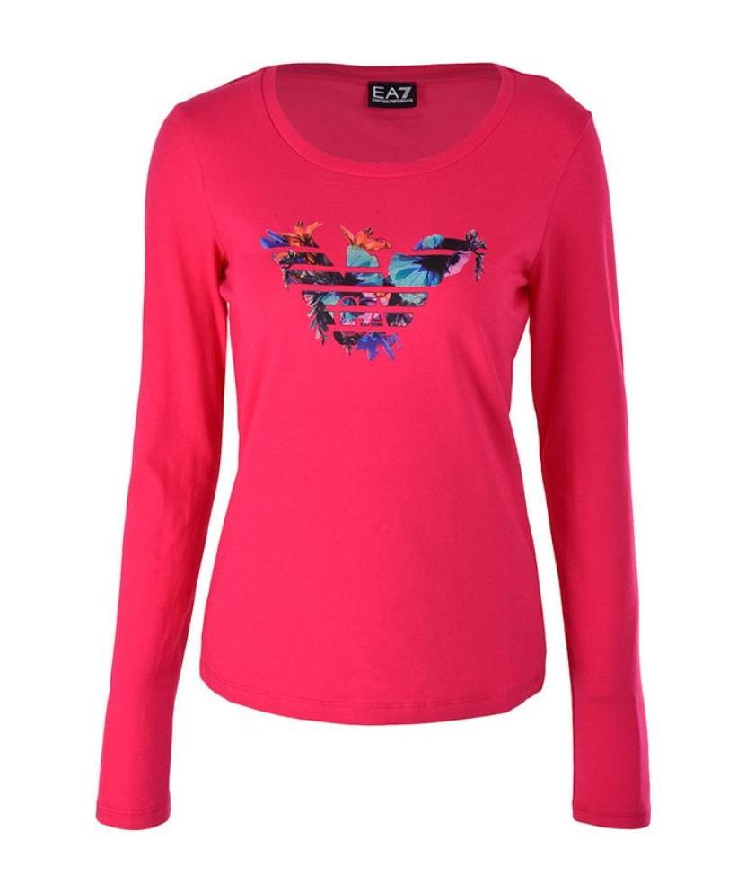 Red classic logo T-shirt, round collar, long sleeves, straight hem.