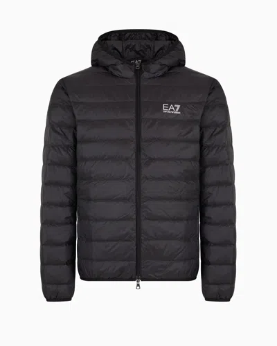 Ea7 Core Identity Packable Down Jacket With Hood In Black