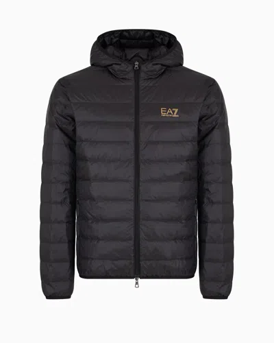 EA7 Core Identity Packable Down Jacket With Hood In Black