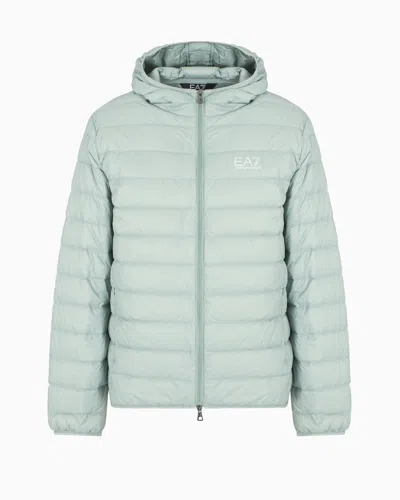 EA7 Core Identity Packable Down Jacket With Hood In Blue