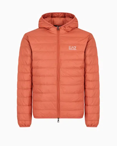 EA7 Core Identity Packable Down Jacket With Hood In Orange