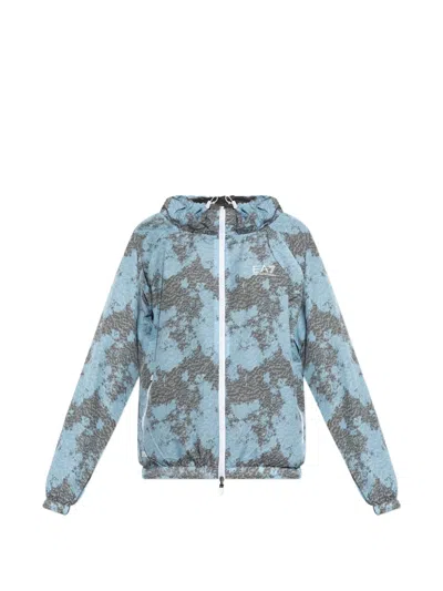 EA7 Dynamic Athlete Patterned Hooded Jacket In Blue