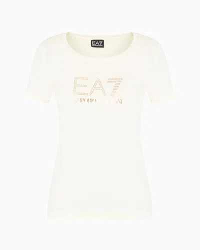 EA7 Evolution Stretch Cotton And Modal Blend T-shirt With Oversized Logo In White