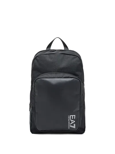 black top handle EA7 logo plaque zip fastening main compartment padded back panel