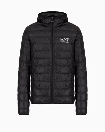 EA7 Packable Hooded Core Identity Puffer Jacket In 黑色