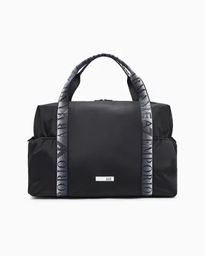 Practical and versatile technical-fabric duffel bag with spacious volumes. The style features double handles in a gradient-effect logo webbing, a zip closure, convenient adjustable and detachable shoulder strap and EA7 logo customisation. Perfect for leisure or sports, it’s ideal for carrying everything you need for a gym workout or a weekend away.