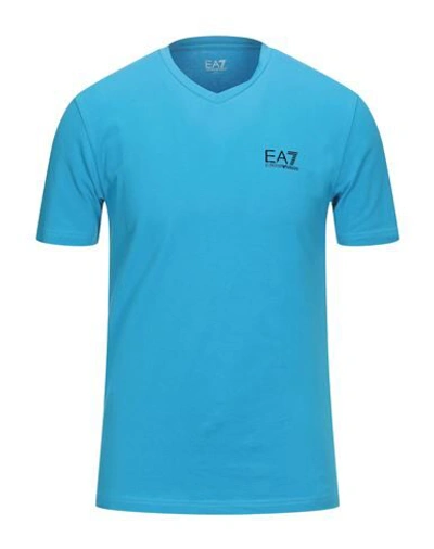 EA7 T-shirts. jersey, logo, solid color, v-neck, short sleeves, no pockets, stretch. 95% Cotton, 5% Elastane