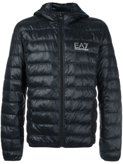 Black feather down zip up jacket from Ea7 Emporio Armani.