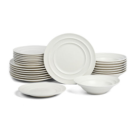 The Celeste Stoneware Dinnerware Set is designed to settle you into every meal-from a quiet, early morning breakfast to a bustling family dinner. From clean curves, crisp lines, and wide rims to a durable glossy finish, Celeste maintains a perfect appearance, even with regular use. Each piece fits snuggly into one another, working together to create an elegant focal point for your table, so you can serve up anything and everything. This set includes: Wide 10" dinner plates, 8.5" salad plates, Large 8.3" pasta bowls.# Pieces In Set: 8Included: 8 10 Inch Dinner Plate(s), 8 8 1/4 Inch Bowl(s), 8 8 1/2 Inch Salad Plate(s)Features: Microwave SafePlace Setting: Service for 8Shape: RoundBase Material: 100% StonewareCare: Dishwasher SafeDecor Styles: CasualMaterial: StonewareCountry of Origin: Imported