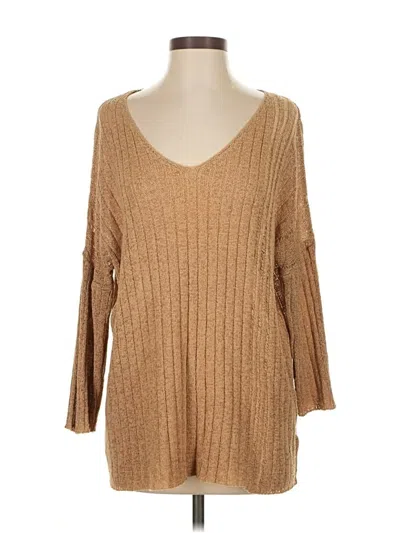 Earthbound Trading Co. Pullover Sweater, Size: Small. Item Details: Tan, Plunge Neckline, 3/4 Sleeve, Women's Tops
