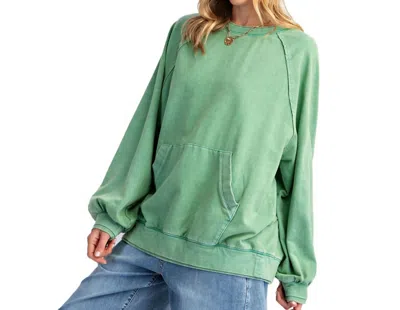 EASEL Kangaroo Pocket Terry Pullover In Sage In Multi