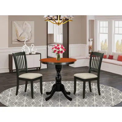 EAST WEST FURNITURE 3-piece Dining Table Set Include A Wood Table And 2 Linen Fabric Kitchen Chairs With Ladder Back - B In Blue