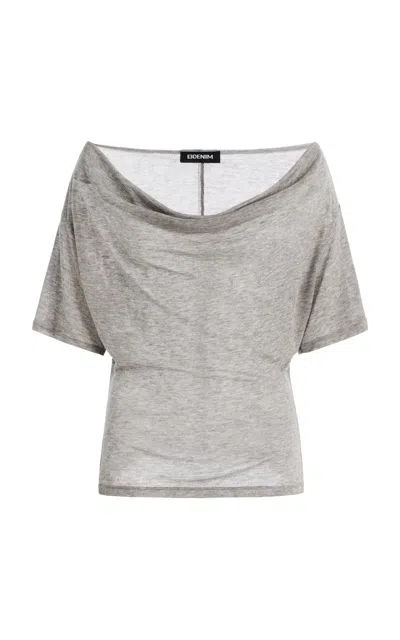Designed in Los Angeles; California by Elena Bonvicini; EB Denim is rooted in the reconstruction of vintage; made in America Levi 501s. Designed to be worn off one shoulder; 'Madeo' is a slightly sheer cowl neck tee made from soft cotton jersey complete with a signature spine seam.