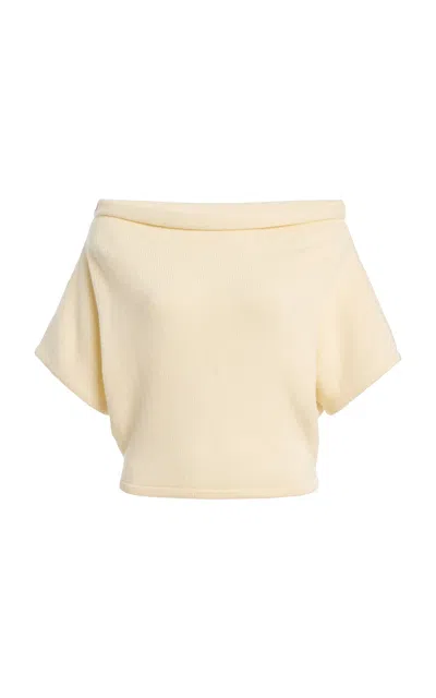 Designed in Los Angeles; California by Elena Bonvicini; EB Denim is rooted in the reconstruction of vintage; made in America Levi 501s.The 'Dahlia' shrug is a knit sweater designed to sit off the shoulders with a relaxed shape.