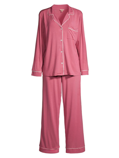 From the Gisele Collection. A cute soft jersey set, tailored with a button down top, contrast piping, and a comfortable elastic waist. Modal/spandex. Hand wash. Imported. TOP Notch collar Long sleeves Button front Chest patch pocket Piping detail PANTS Elasticized waistband Pull-on style Piping detail SIZE & FIT About 26.5" from shoulder to hem Rise, about 9" Inseam, about 30.5" Leg opening, about 18.5" Model measurements: 5'10" tall, 33" chest, 24.5" waist, 34" hips Model is wearing a US size Small. Lingerie - Modern Sleepwear > Eberjey > Saks Fifth Avenue > Barneys. Eberjey. Color: Raspberry Ivory. Size: XL.
