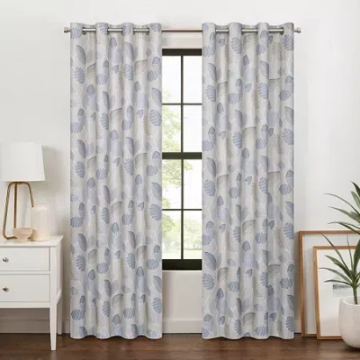 ECLIPSE Larissa Leaf Grommet Top 100% Blackout Single Curtain Panel In Blue