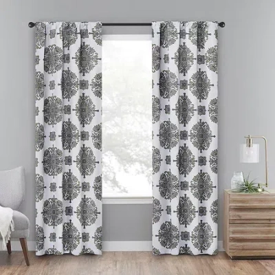 Redecorate in a snap with Eclipse Olivia Thermaweave room-darkening window curtain panel. These beautiful panels offer a superior blend of window fashion design and light blocking technology for any decor. This medallion print curtain is woven with energy saving yarns so that the technology blends seamlessly with fashion fabrics. Each Olivia window panel measures 37 In. wide by your choice 63, 84, or 95 In. long. 3 In. rod pocket accommodates up to a 1.50 In. curtain rod. Curtain rod sold separately. Sold as a single panel. 100% Polyester. Machine wash gentle cycle, tumble dry, do not bleach. Imported.Number of Panels: 1Included: 1 Panel(s)Top Construction: Rod PocketTop Opening: 3 In Rod PocketUse: IndoorFiber Content: 100% PolyesterFabric Description: WovenLight Filtration: Light-FilteringCare: Tumble Dry, Machine WashCurtain Length: 95 InchCurtain Width: 38 InchBack of Curtain Color: Same As Front of CurtainValance Type: Not A ValanceCountry of Origin: Imported