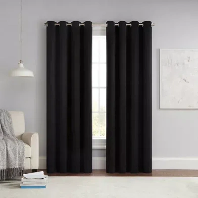 Thermapanel Grommet Top Light-filtering Single Curtain Panel In Black