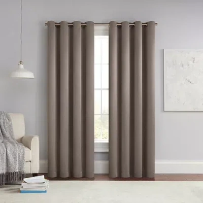 The eclipse solid Thermapanel grommet curtain panels bring style to any window. The woven panel overs classic styling to any home decor. Utilizing eclipse's Thermaweave technology, this curtain features room darkening fibers woven into a soft, Drapable fabric. These energy efficient curtain panels help keep your home cooler in the summer and warmer in the winter. Metal grommets make it easy to hang and open and close your curtain panels. Room darkening panels are made of materials that reduce light, and considerably darken the room. Some light will show through. The darker the color panels, the better the light reducing capabilities. These curtain panels provide privacy and do not allow a view through your window. Curtain panels are solid individually and will fit a curtain rod up to 1.25" in diameter. Measure carefully before selecting your desired size and quantity. Rod not included. Machine washable. Number of Panels: 1Included: 1 Panel(s)Top Construction: GrommetTop Opening: 1 1/2 In Grommet OpenUse: IndoorFiber Content: 100% PolyesterFabric Description: MicrofiberLining: UnlinedLight Filtration: Light-FilteringCare: Machine WashCurtain Length: 63 InchCurtain Width: 54 InchGrommet Color: NickelDecor Styles: ContemporaryBack of Curtain Color: GrayCountry of Origin: Imported