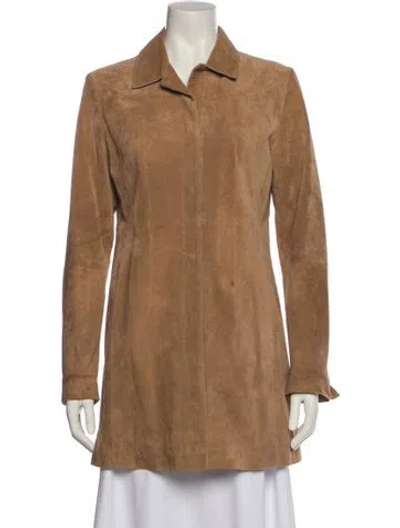 Ecru Leather Coat Brown Pointed Collar Short Fit: Coats by Ecru typically fit true to size. | Ecru Leather Coat in Brown, Women's S