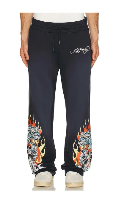 ED HARDY Tiger Flames Baggy Sweatpant In Blue