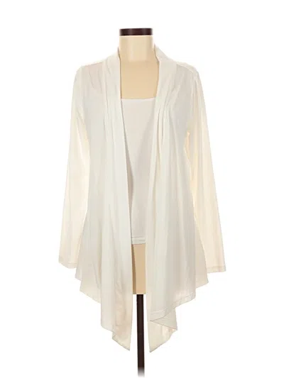 Eddie Bauer Kimono, Size: Medium. Item Details: Ivory, Cowl Neck, 3/4 Sleeve, Fringe, Women's Tops, Polyester/Tencel/Spandex