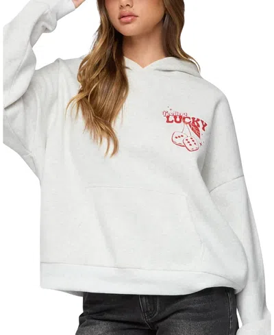 Reach your ultimate level of coziness, while still feeling on-trend with this perfect Feeling Lucky Oversized Hoodie from Edikted. Pair it with comfy sweatpants to complete the look. HoodieGood luck babe graphic textDice graphic printPolyester, CottonModel wears size SModel height is 5'10Item care: Machine wash at maximum 30C, wash with similar colors, do not bleach, do not tumble dry, iron at a maximum of 110C, do not dry clean Edikted Womens Feeling Lucky Oversized Hoodie - Grey size XL