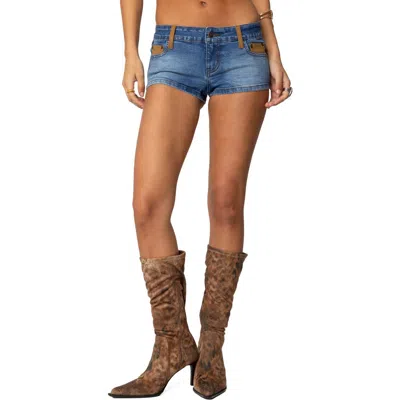 EDIKTED Max Low Rise Micro Denim Shorts In Blue-washed