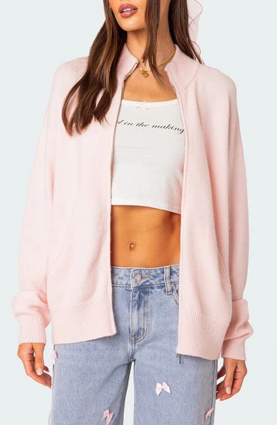 EDIKTED Montie Oversize Double Zip Cardigan In Light-pink