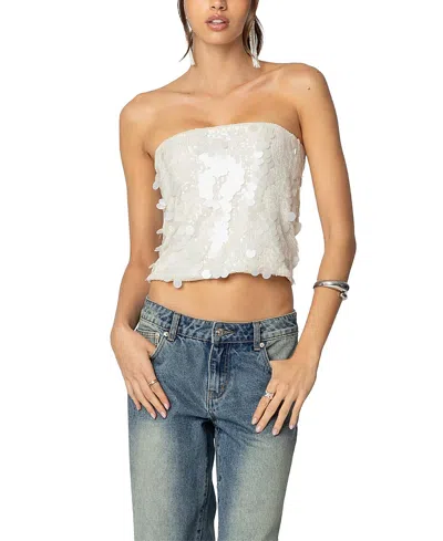 Edikted Samara Sequin Strapless Top.Color:Cream.Size:XL.Material:95% Polyester 5% Spandex.Tops.
