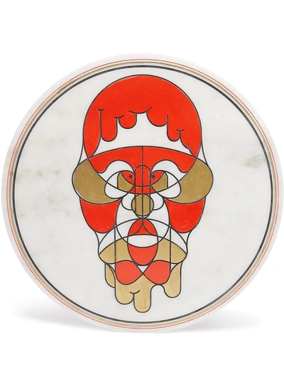 Ivory/red/yellow marble Marblelous IX plate (32cm) from Editions Milano featuring circular body, abstract pattern print and contrasting trim.