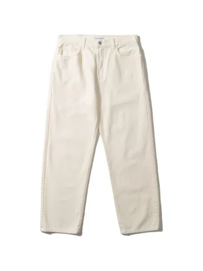 of- white belt loops side diagonal pockets button fastening