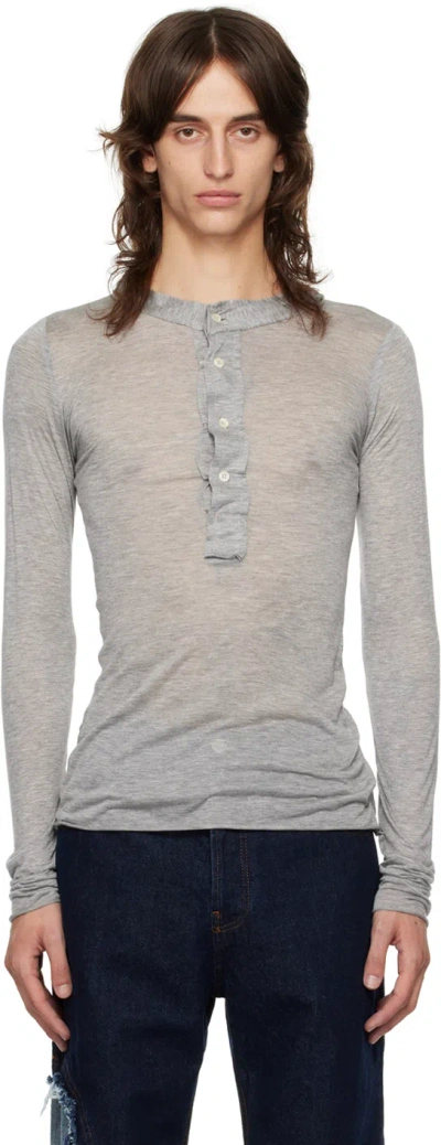 EDWARD CUMING Gray Raw Stack Henley In Grey Marl
