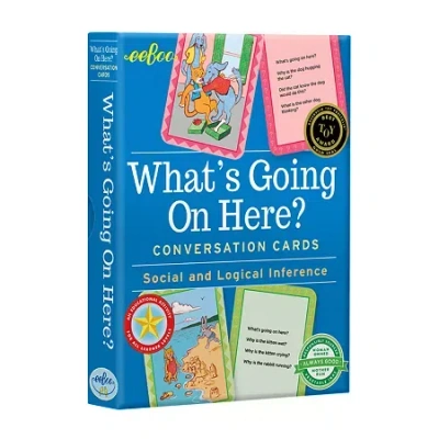eeBoo What's Going On Here? Conversation Flash Cards help us to understand the friendly illustrations by making inferences using logic, observation, and social experience. What's Going On Here? conversation cards cultivate valuable communication skills and help build an essential foundation for social literacy, analyzing clues, and problem solving. Winner of Gold Best Toy Oppenheim Award and Oppenheim SNAP Award (Special Needs Adaptable Product). We are a women-owned business dedicated to sustainability, safety, and the creation of original and extraordinary gifts and toys. This item is made of 90% recycled materials, printed with vegetable-based inks. For over 25 years, eeBoo has created wholesome, educational games and activities that cultivate conversation, socialization, and skill-building while introducing our world. PRODUCT BENEFITS: Helps develop empathy and observational skills while examining friendly illustrations depicting emotional dynamics in a variety of situations. Conversation Cards cultivate valuable communication and analytical skills while building an essential foundation for social and emotional learning.DEVELOP SOCIAL and EMOTIONAL INTELLIGENCE: 50 illustrated 4.5 x 6 inch cards with picture prompts for conversation about emotional situations, in a sturdy 5 x 6.5 inch box. For ages 3 and up.ACCESSIBLE ARTWORK: Warmly illustrated by Saxton Freymann, situations are depicted to encourage thoughtful analysis of emotional dynamics, sparking conversation and insight.SUSTAINABLY SOURCED: 90% recycled materials, printed with vegetable-based inks.WOMAN-OWNED business dedicated to sustainability, safety, and the creation of original and extraordinary gifts and toys. SUSTAINABLY SOURCED: 90% recycled materials, printed with vegetable-based inks. SCREEN-FREE FUN: For over 25 years, eeBoo has created wholesome, educational games and activities that cultivate conversation, socialization, and skill-building while introducing our world.# Pieces In Set: 50Recommended Ages: 3 Years And UpUse: IndoorMeasurements: 6.5 Length/InchesBase Material: 100% PaperCare: Wipe CleanCountry of Origin: Imported