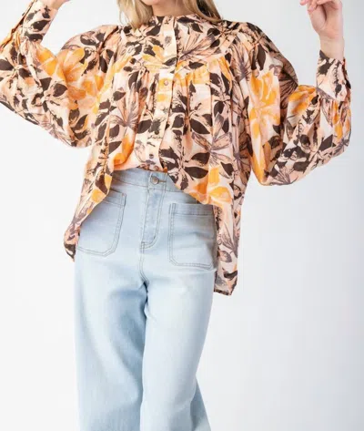 EESOME Printed Button Down Bubble Sleeve Top In Yellow In Multi