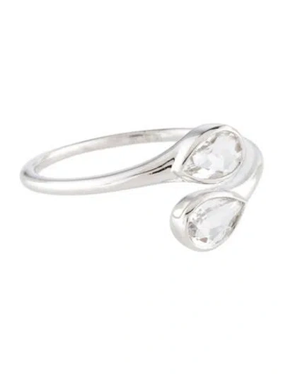 Rhodium-Plated 14K White Gold Featuring 0.69 Carat Faceted Pear Shaped Quartz Includes Tag | EF Collection 14K Quartz Double Pear Ring, Women's 7.5