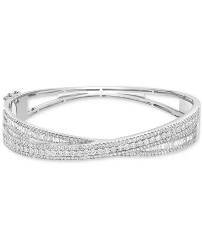 Effy Diamond Round & Baguette Crossover Bangle Bracelet (2-1/6 Ct. T.w.) In 14k White Gold