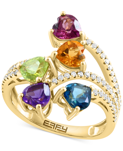 EFFY COLLECTION Effy Multi Gemstone (2-1/3 Ct. T.w.) & Diamond (1/4 Ct. T.w.) Heart Statement Ring In 14k Gold In Yellow Gold