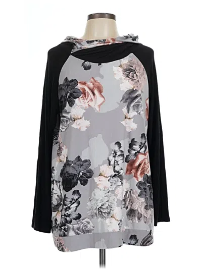 Egs Pullover Sweater, Size: Large. Item Details: Gray, Floral Pattern, Tie Neck, Long Sleeve, Women's Tops