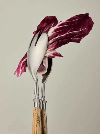 Light Oak Old German Salad Servers (set Of 2) Abask Gift Set In Metallic